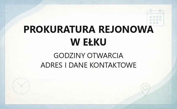 Prokuratura Rejonowa w Ełku obsługuje sprawy z miasta Ełk oraz gmin Ełk, Kalinowo, Prostki i Stare Juchy. Jeśli chcesz zgłosić sprawę, złożyć pismo albo skontaktować się z prokuraturą, najważniejsze dane znajdziesz poniżej. W tekście zebrałem też informacje o biurze podawczym i możliwościach kontaktu elektronicznego.